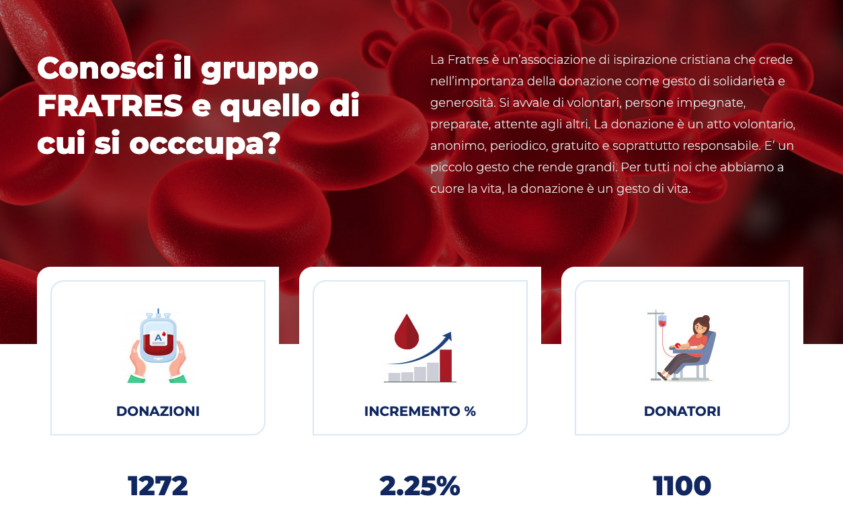 La Fratres è un’associazione di ispirazione cristiana che crede nell’importanza della donazione come gesto di solidarietà e generosità. Si avvale di volontari, persone impegnate, preparate, attente agli altri. La donazione è un atto volontario, anonimo, periodico, gratuito e soprattutto responsabile. E’ un piccolo gesto che rende grandi. Per tutti noi che abbiamo a cuore la vita, la donazione è un gesto di vita.