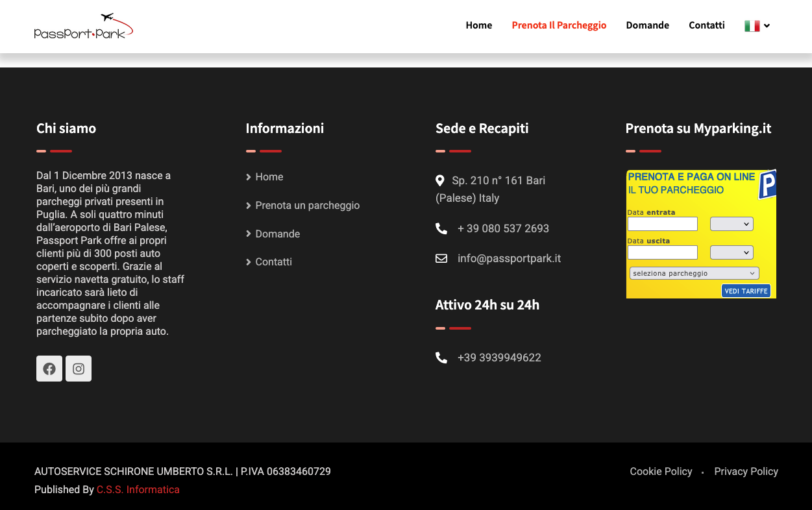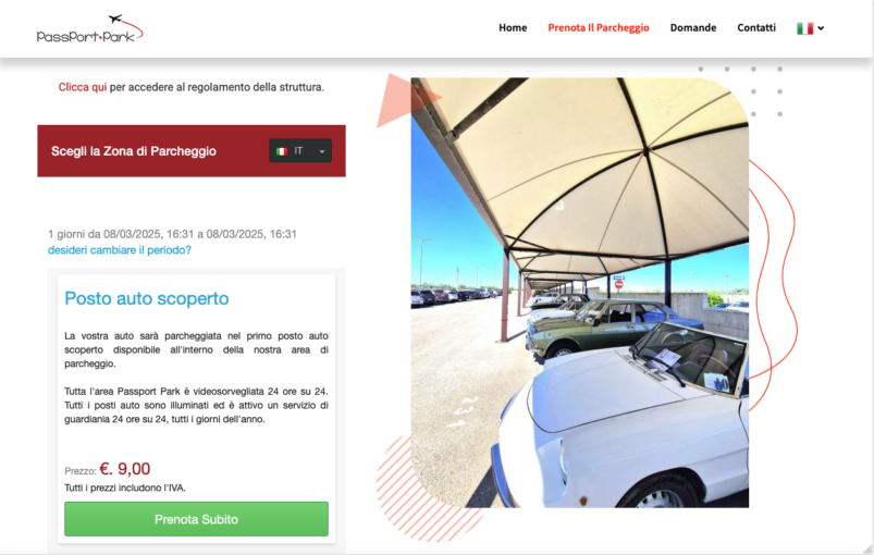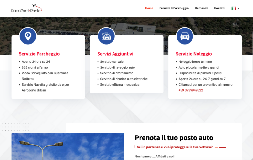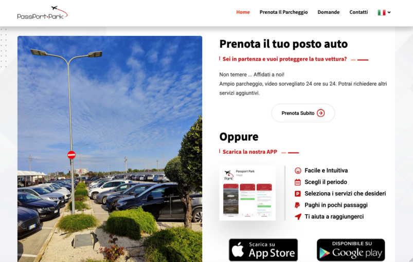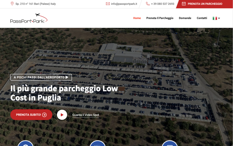 Dal 1 Dicembre 2013 nasce a Bari, uno dei più grandi parcheggi privati presenti in Puglia. A soli quattro minuti dall’aeroporto di Bari Palese, Passport Park offre ai propri clienti più di 300 posti auto coperti e scoperti. Grazie al servizio navetta gratuito, lo staff incaricato sarà lieto di accompagnare i clienti alle partenze subito dopo aver parcheggiato la propria auto.